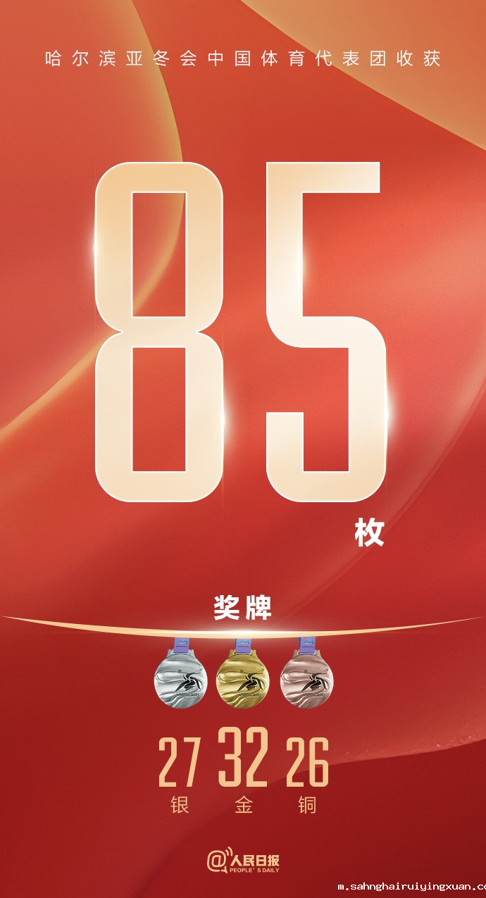 2月14日,随着哈尔滨亚冬会女子冰球中国队对阵日本队的比赛结束,中国体育代表团在本届亚冬会所有比赛项目全部结束。最终,中国体育代表团收获32金、27银、26铜共计85枚奖牌,位列本届亚冬会金牌榜和奖牌榜首位,创造亚冬会历史参赛最好成绩。