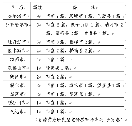 《黑龙江党史工作信息》2016年度用稿情况统计